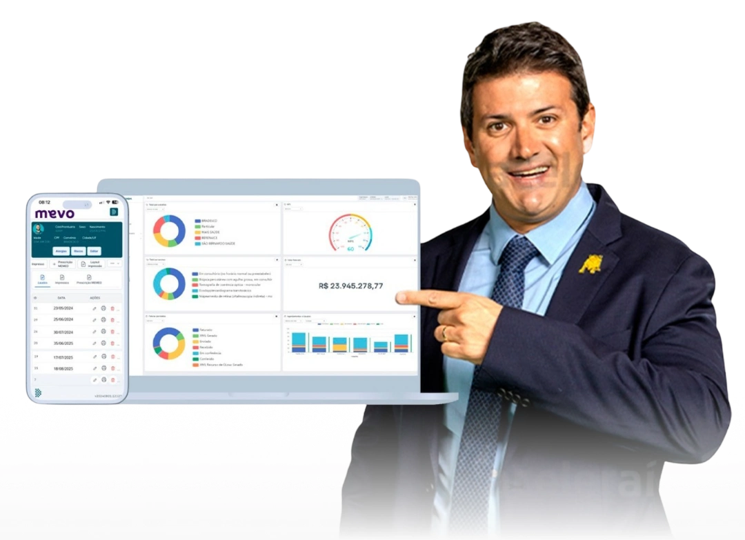 A plataforma oferece recursos de analytics e inteligência de dados com indicadores assistenciais, operacionais e gerenciais, apoiando a tomada de decisão estratégica.